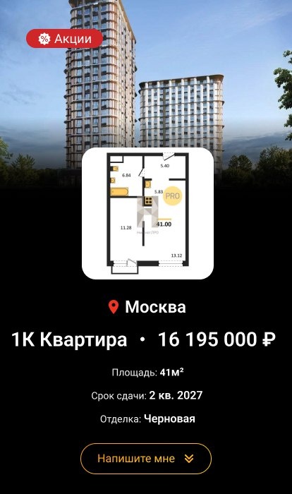 βͺοΈ 1Π ΠΊΠ²Π°ΡΡΠΈΡΠ° β 41 ΠΌΒ²