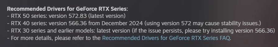 Пользователи и игровые студии бьют тревогу: последние версии драйверов NVIDIA сопровождаются совершенно случайными синими (BSOD) и черными экранами, которые встречаются на всех видеокартах GeForce начиная с RTX 30 и вплоть до новейших RTX 50. NVIDIA пытается починить свои драйверы уже несколько версий, но, как заявляется, вообще все 572.XX доставляют пользователям совершенно одинаковые проблемы без каких-либо намеков на исправление ситуации. Сейчас к игрокам присоединились еще и разработчики двух свежих игр — InZoi и The First Berserker: Khazan. Они рекомендуют столкнувшимся с проблемами пользователям RTX 30 и RTX 40 откатить драйверы до версий 565.XX от декабря прошлого года и пока не обновляться до более свежих версий. Для RTX 50, как понимаете, в данный момент решения нет просто потому, что драйверы до 572.XX попросту не поддерживают эти видеокарты.