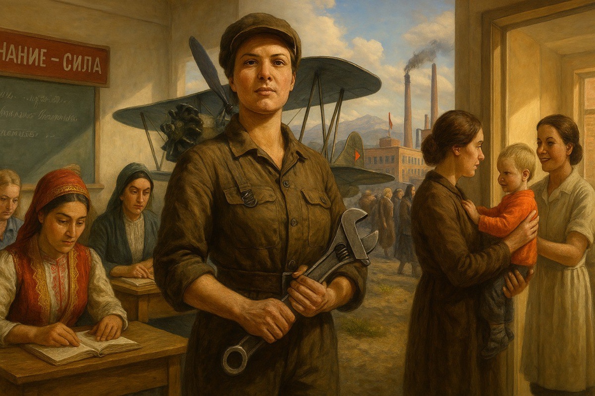 Трактористки и летчицы: История женской силы в ЦентрАзии во время СССР 💪👩🏫 Советский Союз стал пионером в борьбе за права женщин — здесь эмансипация была не просто лозунгом, а государственной политикой. 📚 До революции 1917 г. женщины в России почти не имели доступа к образованию и профессиям. Но большевики кардинально всё изменили: 🔹 В 1918 г. закрепили равные права мужчин и женщин 🔹 Женщины получили доступ к работе, образованию и армии 🔹 К 1939 г. женская грамотность выросла до 81% 🔹 В 1980-х 70% врачей и 85% учителей в СССР были женщинами 🛠 Во время индустриализации женщины становились трактористками, инженерами, военными. В годы войны 800 тыс. женщин служили в армии. ⚖️ Но были и проблемы: «двойная смена» — работа + дом, и низкое представительство женщин в политике. 📌 СССР показал: для реального равенства нужны не только законы, но и инфраструктура + борьба со стереотипами. Его опыт до сих пор актуален для всего мира 🌍