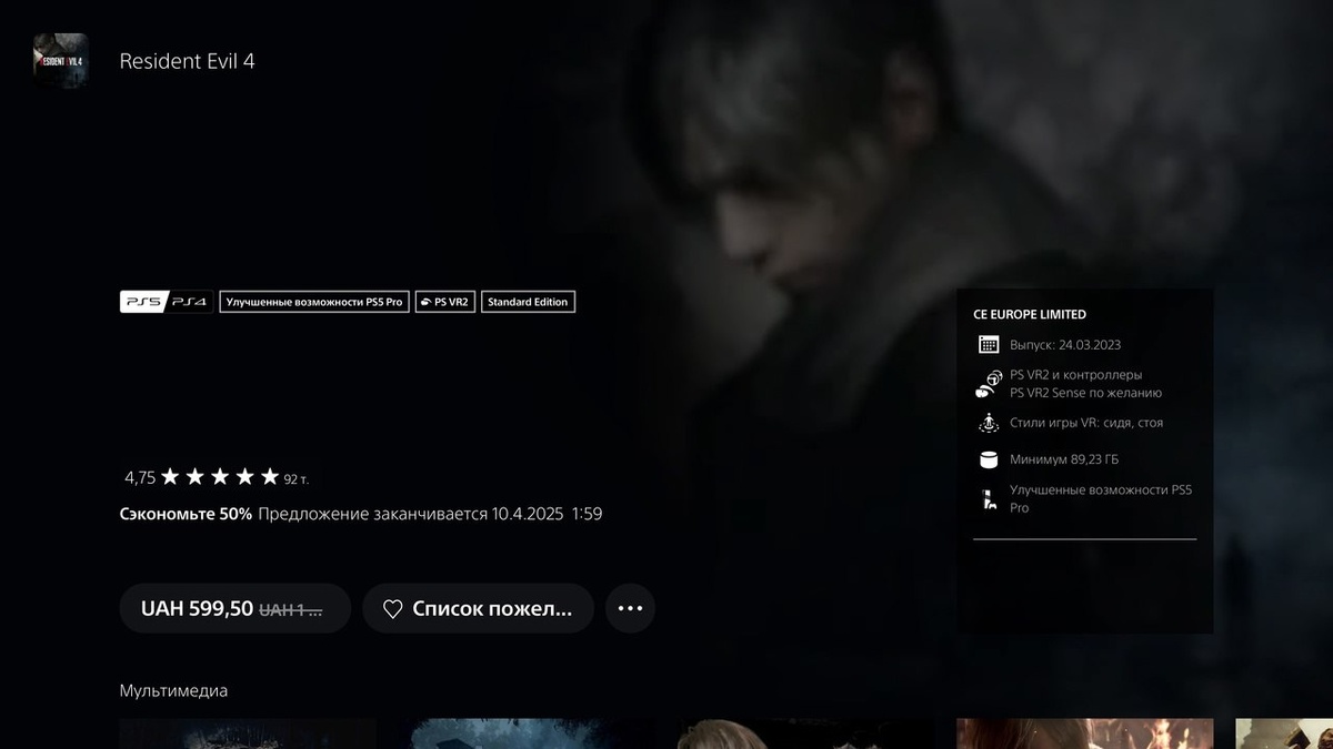 Ремейк Resident Evil 4 продаётся в PS Store со скидкой 50% — всего за 699,50 TL вместо 1399 TL