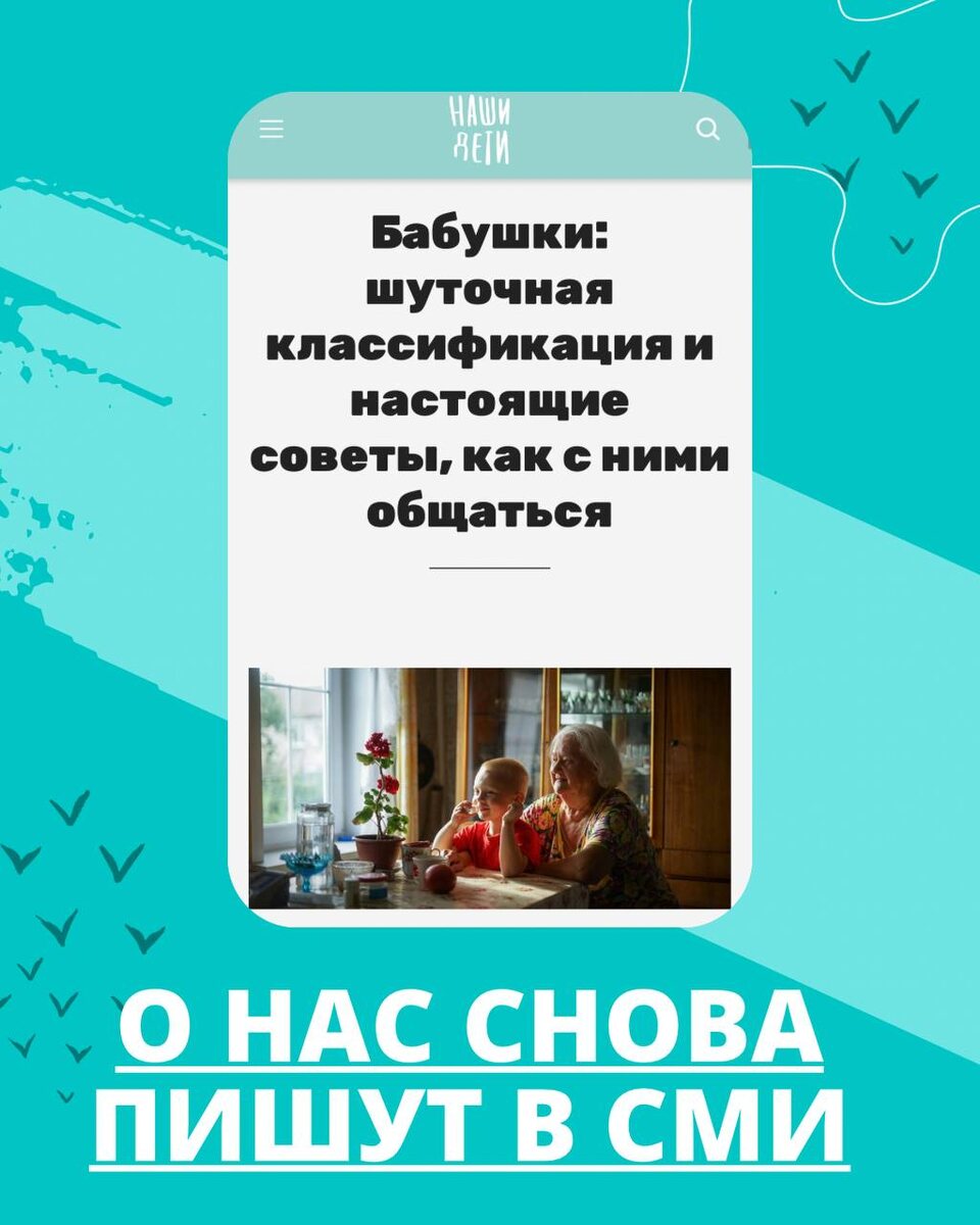 📢В журнале https://nashideti.site/ для родителей, которые всю жизнь учатся растить своих детей опубликована шуточная классификация бабушек и тактика общения, в зависимости от типажа 🗣️ https://nashideti.site/babushki-shutochnaya-klassifikatsiya-i-nastoyashchie-sovety-kak-s-nimi-obshchatsya/ Почитайте, очень смешно! #о_нас_пишут 🖥https://dzen.ru/babushka_4ever?experiment=948515&utm_referrer=l.instagram.com 🌐https://babushka-forever.online __________ Присоединяйтесь к сообществу «Бабушка_Forever», «Бабушка_Навсегда» Наладить отношения с внуками онлайн — это к нам!