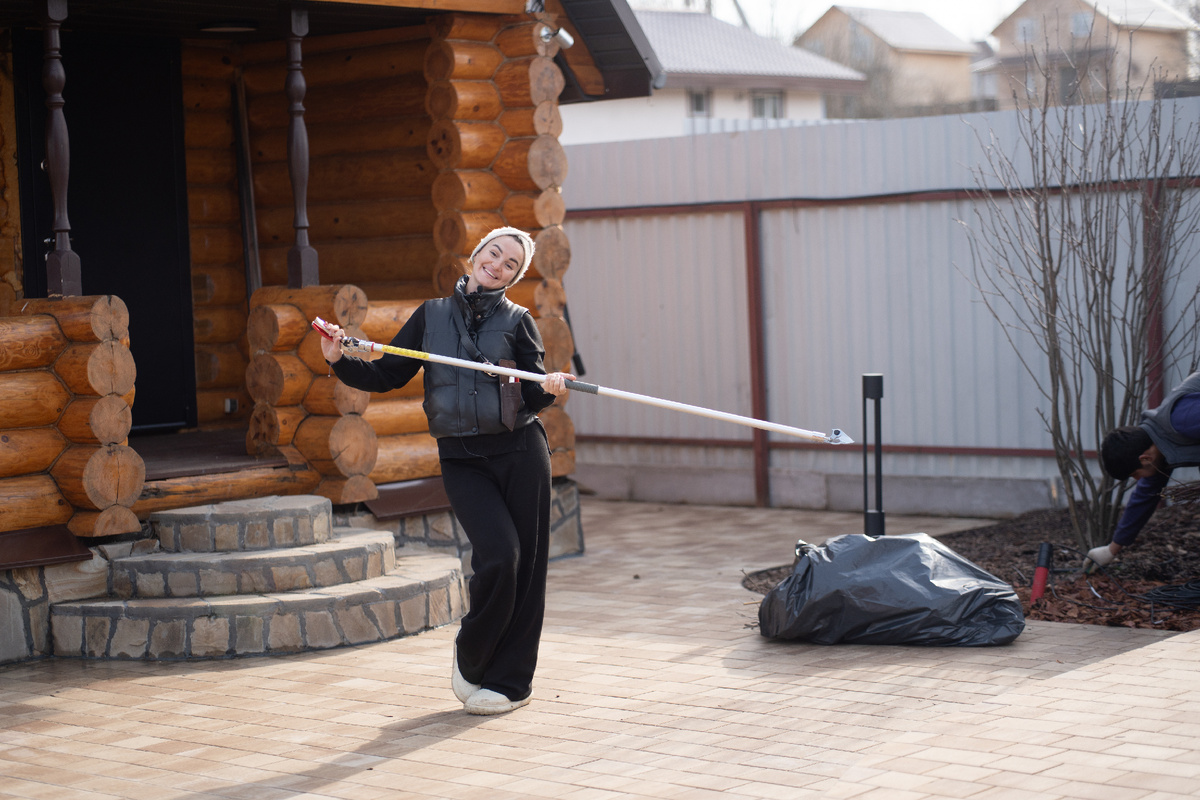 - Уборка территории. Необходимо удалить с участка опавшие листья, ветки и прочий мусор, накопившийся на нем за зиму.