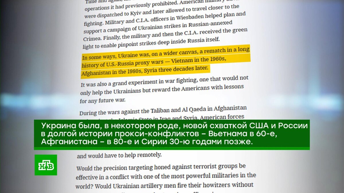 [ Смотреть видео на сайте НТВ ] Все последние годы Вашингтон продолжал размахивать перед Киевом морковкой под названием «вступление в НАТО» и при этом категорически отрицал свою вовлеченность в боевые действия. На его стороне была и американская пресса, но теперь она вдруг заговорила совершенно иначе. В расследовании The New York Times, озаглавленном «Секретная история американского участия в украинской войне», ничего особо секретного нет. А если и считать что-то таковым, то в России это точно «секрет полишинеля», известный многим. Популярное американское издание лишь подтверждает то, что Соединенные Штаты и страны НАТО с самого начала конфликта не просто поставляют оружие Киеву, но еще и помогают целиться из него, предоставляя разведданные и разрабатывая военные операции. Как пишет газета, даже некоторые союзники были ошеломлены, насколько глубоко НАТО ввязалось в украинские операции. «Теперь они часть цепочки убийств», — цитирует The New York Times представителя одной из европейских