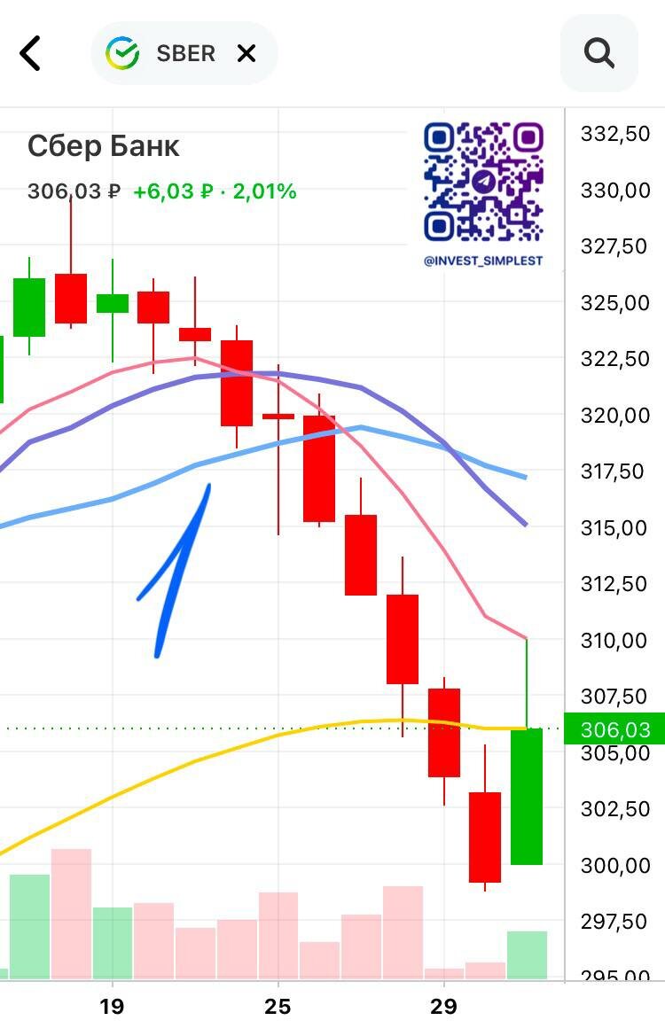 График 1. Идём в рамках обозначенного утром сценария (случился «поцелуй» со средней МА 50 и даже с ЕМА 9, а далее пошёл отбой вниз). ✅