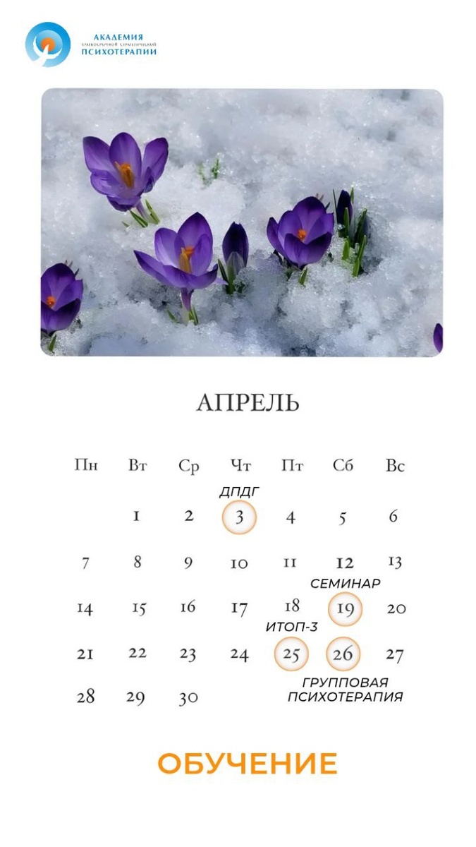 🕊️ В предвкушении нового знакомим вас с насыщенным расписанием на апрель! Выбирайте мероприятия по душе и до встречи в Академии! 🌷