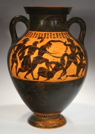 Силуэтные изображения людей мы можем увидеть в древнегреческой вазописи. Здесь художники рисовали не только силуэты фигур, но и промежутки между ними – контрформы.