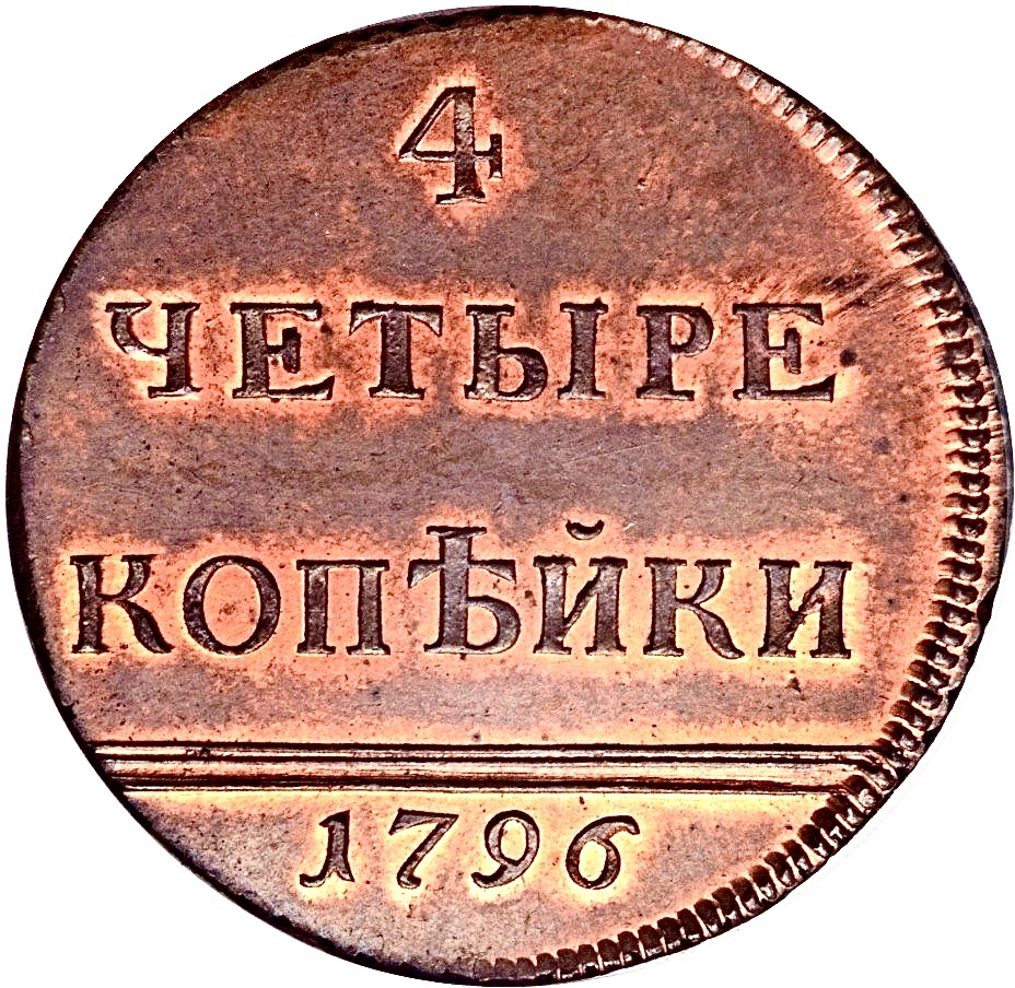 Идея отчеканить в 3-й раз монету номиналом 4 копейки принадлежит последнему фавориту императрицы Екатерины II, светлейшему князю и Её Императорского Величества генерал-адъютанту Платону Зубову: она была частью его плана радикального оздоровления государственных финансов.