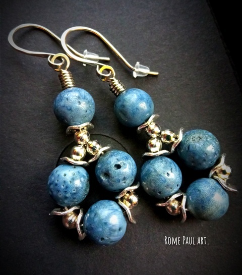 Материалы: природный голубой(синий) коралл Акори (11 мм, Австралия), ювелирный мельхиор (гипоаллергенно), посеребрённая фурнитура