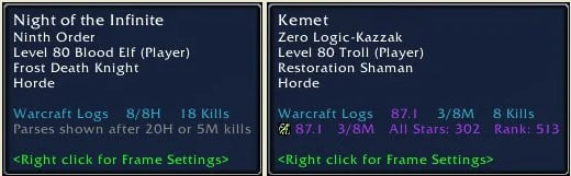 ✅ Можно отключить отображение через настройки Warcraft Logs.