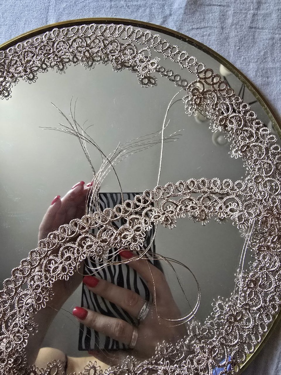 Мне пора пить что то для памяти🙈 Я сплела первый образец для зеркала, но я не удачно подобрала узор. Во втором узоре я внесла изменения, всё получилось, но не рассчитала рапорты. Ну думаю с третьем то ничего не случится. На прошлой неделе я с ребёнком легла в больницу. И естественно взяла челноки. На втором образце отсчитала количество дуг и мне нужно было сплести на одну больше, чтобы рапорты поместились. Я записала это число себе в заметки❗️56. Я должна была сплести 56 дуг, а я сделала 57🤦♀️ Потому что я думала, во втором образце у меня 56 дуг и я должна сплести на одну больше. Ну что начинаю плести уже по счету 4 образец👌