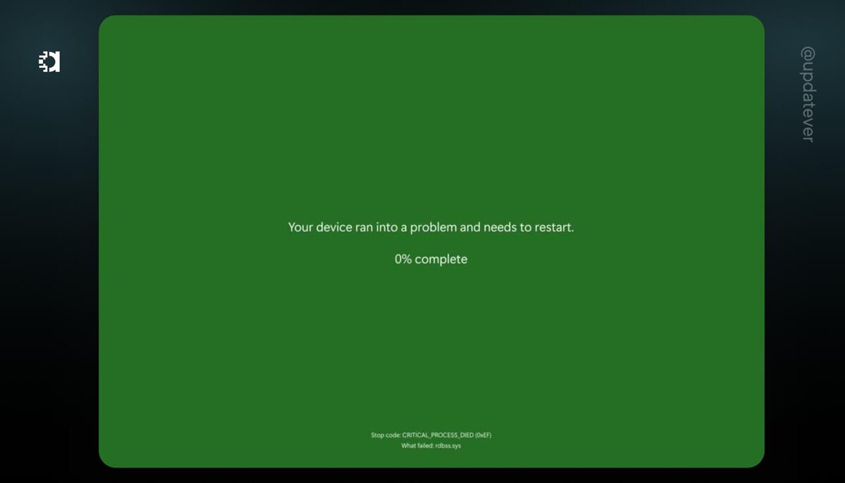 ☠️Новый «экран смерти» Microsoft обновит дизайн «экрана смерти». С экрана пропадет основной текст, смайлик и QR-код. На фото новый дизайн экрана, однако с зеленым фоном. Такой цвет уже давно является эксклюзивом для версий Windows Insiders. Для всех остальных пользователей экран останется синим. ⚡️ Подписаться.