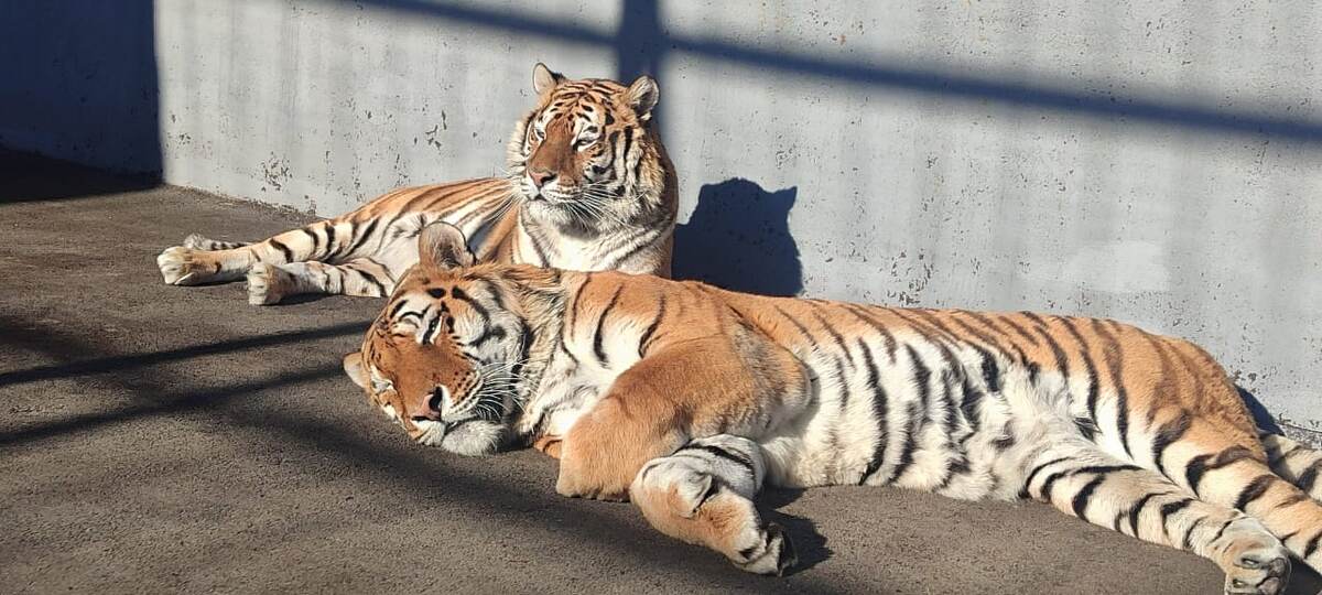 Липецкий зоопарк показал тигров Шер и Оззи, принимающих солнечные ванны