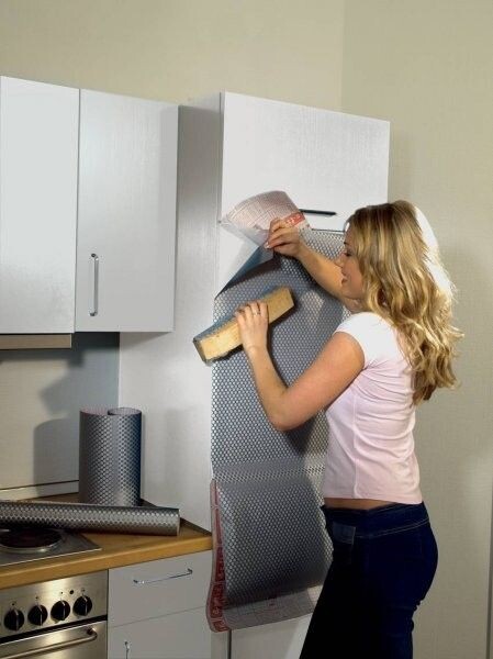 Если на мебели есть потёртости, следы от чашек или детских рисунков, плёнка их скроет. Главное — правильно подобрать текстуру и цвет
