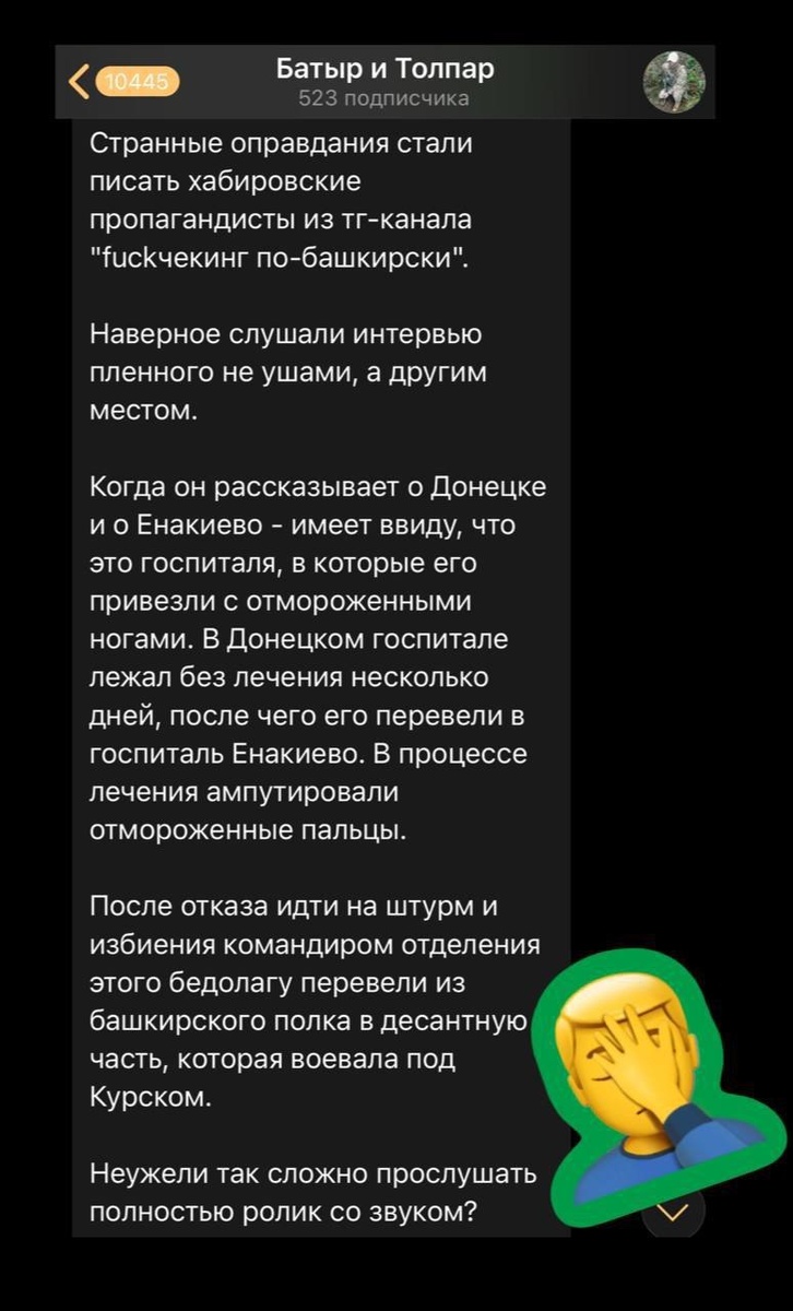 Опа! Канал «батько і мохнатко» снова в эфире со своими «сенсациями». 🎬 Рассказывают душещипательную историю про бойца из полка «Башкортостан», которого якобы подстрелили в колонне. 🤦♂️
