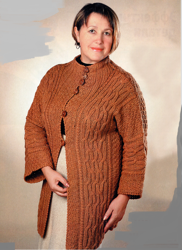 Вязание — это искусство, которое не знает границ, особенно когда речь идет о размере! Сегодня вспомним лучшие модели прошлых сезонов, но постараемся адаптировать их для современных модниц с пышными формами. Никаких тесных кофточек и сложных фасонов — только проверенные временем узоры, переосмысленные для комфорта и стиля. Готовы вдохнуть новую жизнь в классические схемы? Тогда выбирайте свою любимую модель и создавайте образ, который подчеркнет вашу индивидуальность. Ведь красота — это не размер, а умение носить его с удовольствием! Свободные цельновязанные рукава, удобный воротник-стойка, застежка на пуговицы в верхней части. И модный цвет мокко-мусс. Размер L-XL. Пряжа шерсть с акрилом 200м/100гр. Узоры крупнее: Комбинация широких кос использована на передней части пуловера. Из пряжи с мохером они смотрятся особенно мягко и выразительно. За счет такой вязки пуловер приятно обтекает фигуру, а широкие косы уводят взгляд от проблемных зон. Размер XS - XL. Пряжа мохер с акрилом 190м/50г