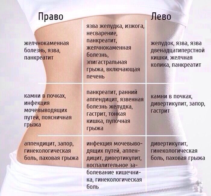 Боль в животе может быть ноющей, колющей, жгучей, скручивающей, схваткообразной или тупой. Существует множество причин возникновения таких болей: