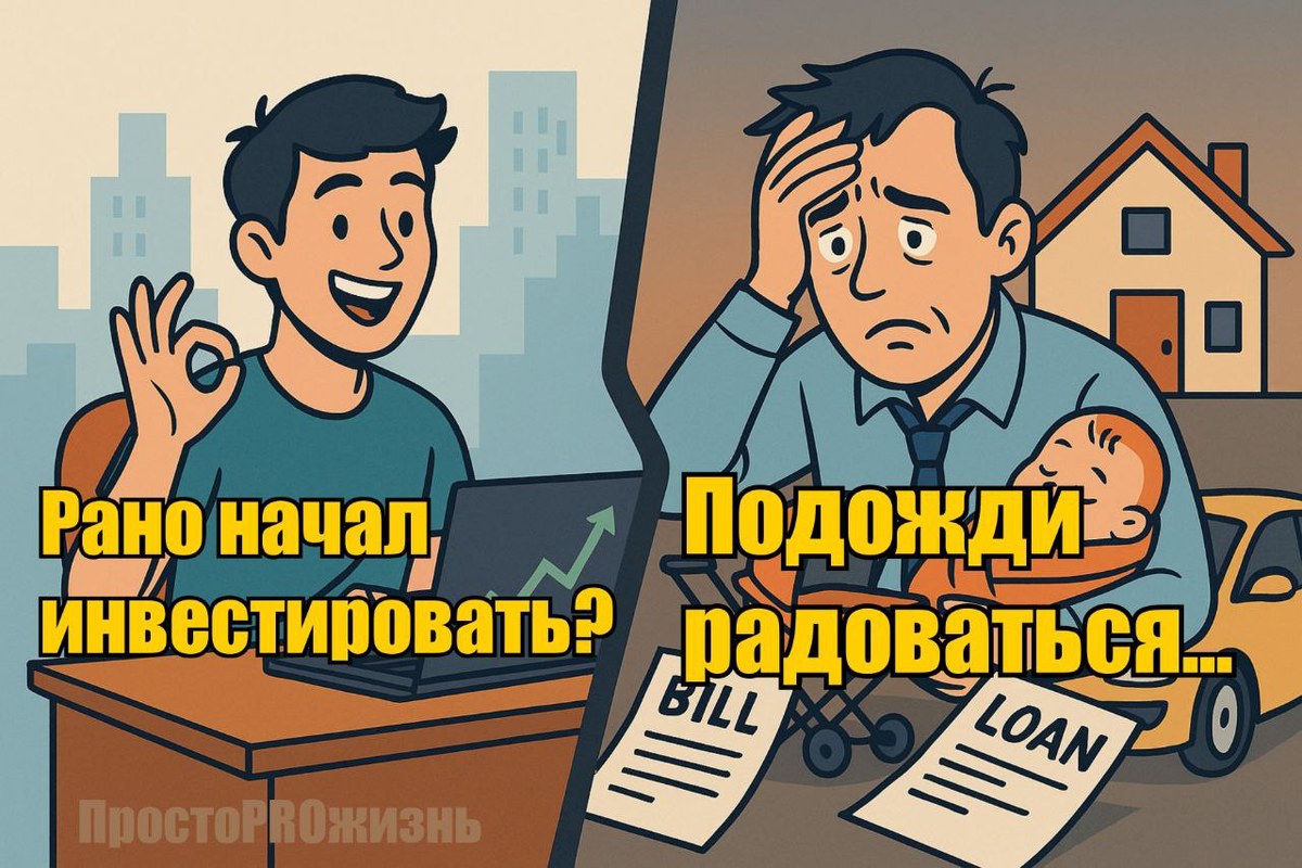 Сейчас у Вас откроются глаза. Вы, инвесторы со стажем и молодёжь, надеюсь, поймёте мои мысли. Все Вы прекрасно знаете (или нет) про чудеснейший эффект сложного процента. Он раскрывается только спустя годы. Наглядный пример — старина Баффет. Мужику миллилард лет и он один из богатейших инвесторов. И добился он этого, в том числе, благодаря сложному проценту. Да, в раннем возрасте, когда ты только начал самостоятельную жизнь, рекомендуется инвестировать кэш в свои знания, которые принесут (или нет) тебе ещё больше денег в будущем. Но и инвестировать раньше начинать тоже неплохо. "И да, всех рад видеть в своём телеграм-канале о пути к финансовой независимости" Мне 39 лет, я начал откладывать деньги уже в довольно зрелом финансовом возрасте — в 35. И я постоянно пишу и говорю, что молодёжь, даже имея меньший стартовый капитал, уже опережает меня. За счёт своего возраста. Но тут есть один жирнющий нюанс, который пришёл мне в голову на прошлых выходных. Я уже пережил практически все крупные