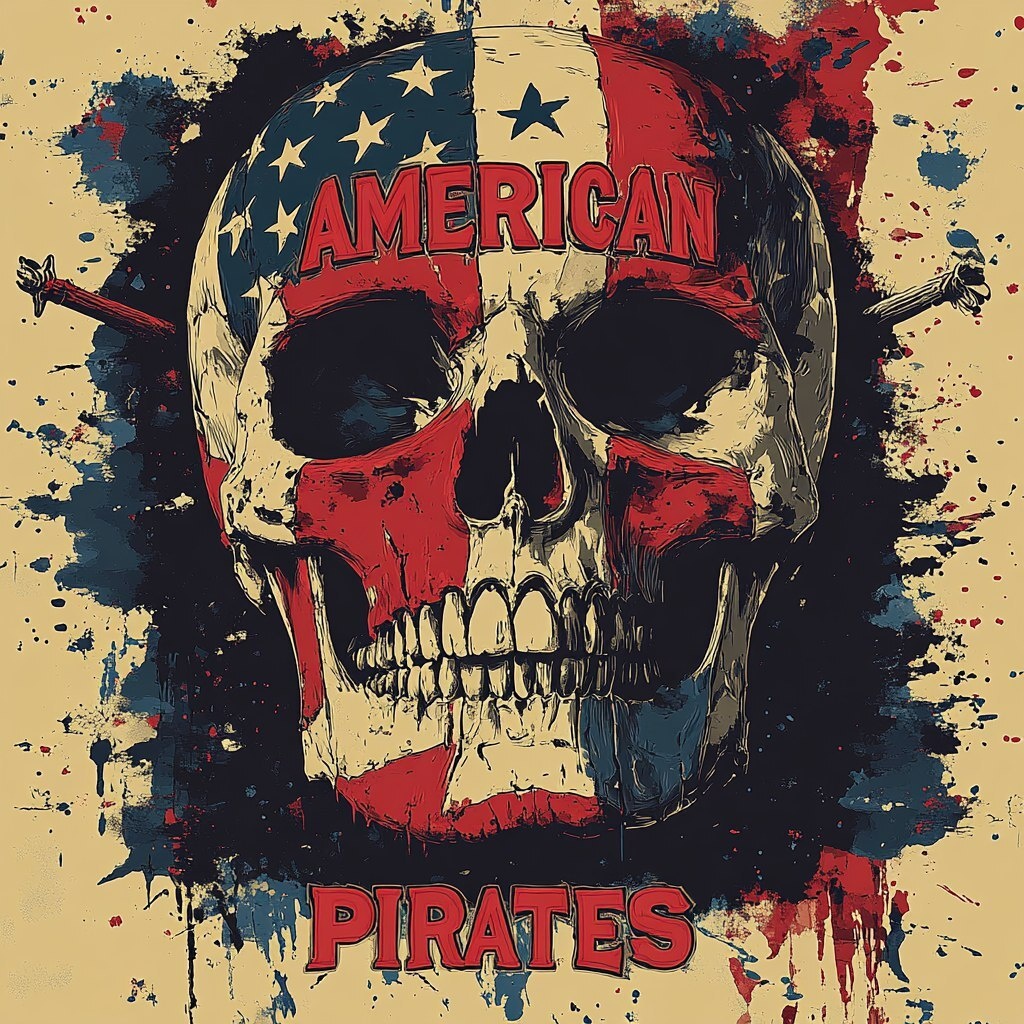 Создано на основе запроса: A skull pattern with its face composed of American flag elements. Above is the red text "AMERICAN", and below is the red text "PIRATES". The background has a black splatter effect, combining American rebellious and pirate elements. --- Автоперевод: Узор черепа с лицом, состоящим из элементов американского флага. Круто выглядит? 🤔 https://dzen.ru/id/65c0c65c86e4f837c27b24d7 #ИИ #AI #нейросеть #midjourney #art
