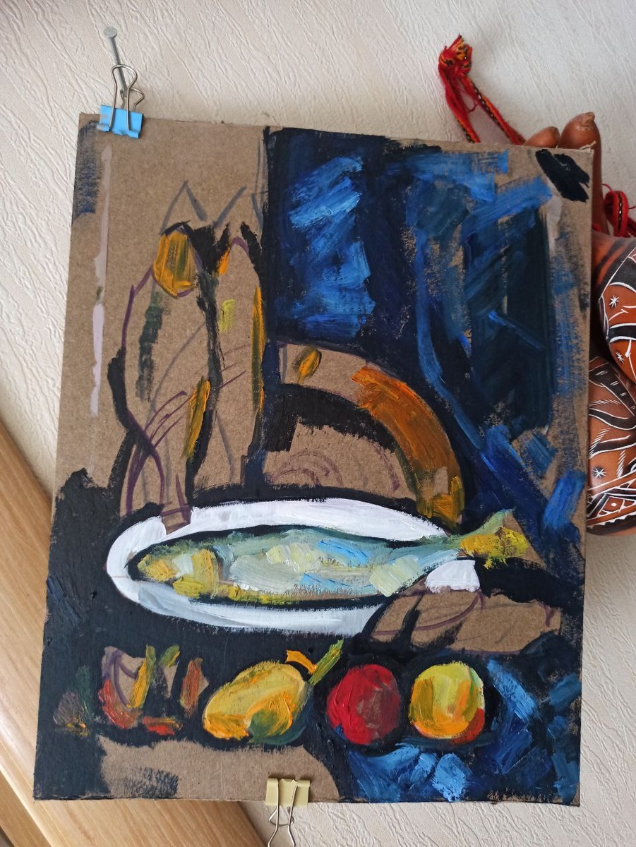 Доделала вчера копию "Натюрморта с рыбами" Машкова. Копия достаточно вольная, этюдная😊