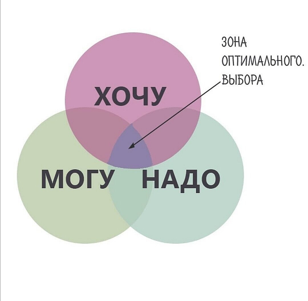 Определяется некое «хочу» , часто совсем не из личных настоящих потребностей , а из зависти или привычки. Дальше все силы бросаются на «надо», ведь надо же достичь вышеуказанное «хочу». И подтягивается «могу». Хорошо, если через реальные возможности, а не через «не могу».
