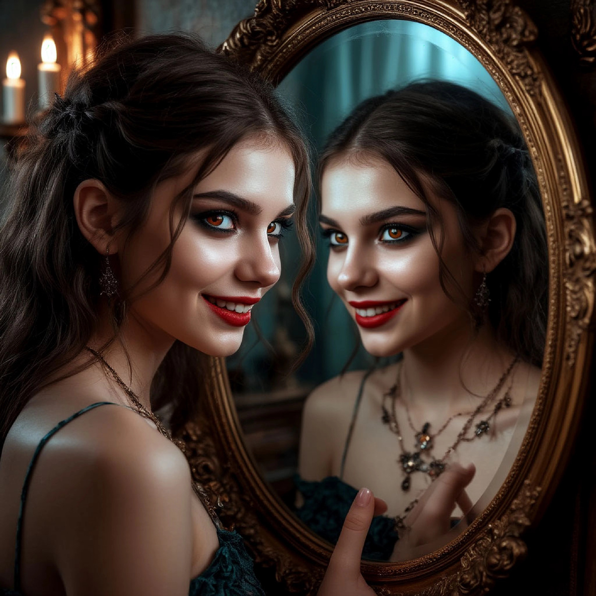 Не выдержав, она разбила зеркало вдребезги. Осколки рассыпались по полу, но в каждом из них отражалось всё то же зловещее лицо.