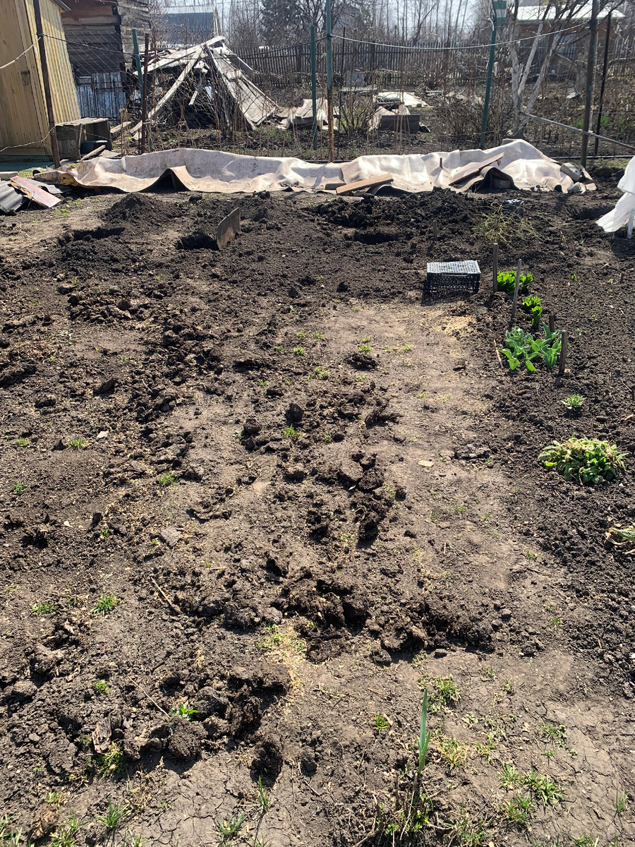 На этом моё творчество на площадке закончилось. 17 апреля должен прибыть заказ на розы. В нём 9 розочек, а я подготовила только 7 ямок для них.
