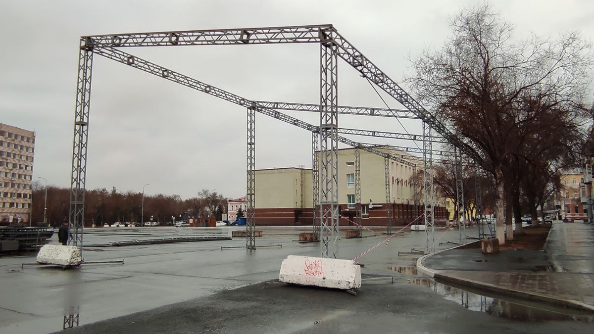 🔻В Оренбурге на площади Ленина начали устанавливать трибуны к 9 мая