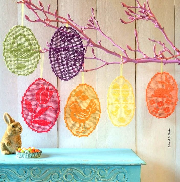 Прекрасные вязаные крючком салфетки с пасхальными мотивами
