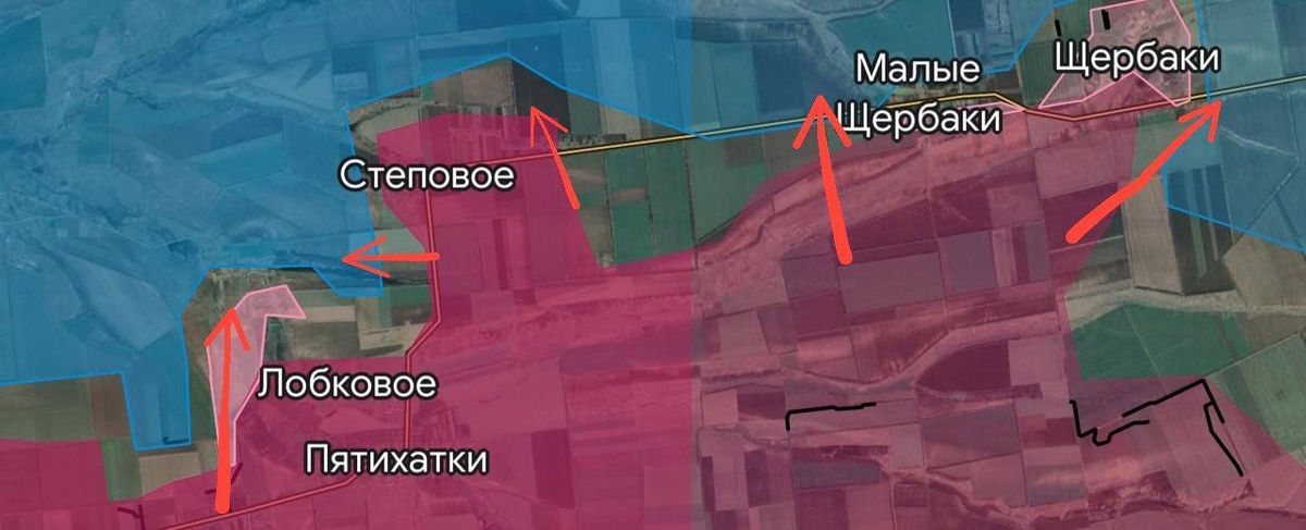 На данном направлении Вооруженные силы РФ продолжают наступательные действия, пробивая оборону противника. В районе н.п. Щербаки и Малые Щербаки. Подразделения ВС РФ слаженно продолжают наступательные действия, тем самым расширяют зону контроля на север и на восток, враг предпринимает попытки контратаковать. В районе н.п. Степовое. Десантники на данном участке фронта расширяют зону контроля на север, запад и юг (в сторону н.п. Лобковое), неоднократно противник отправлял ДРГ и тем самым предпринимал попытки контратаки, каждый раз это безуспешно и враг был уничтожен. В районе н.п. Лобковое. Штурмовые подразделения зашли в населённый пункт с южной части, активно продвигались на север и расширили контроль на восток от Лобкового, от Степового на юго-запад к Лобковому расширяют контроль территорий подразделения ВДВ, большая часть населенного пункта под контролем ВС РФ, скоро будут хорошие новости. Ситуация на данном участке фронта по-прежнему динамична, говорить о больших