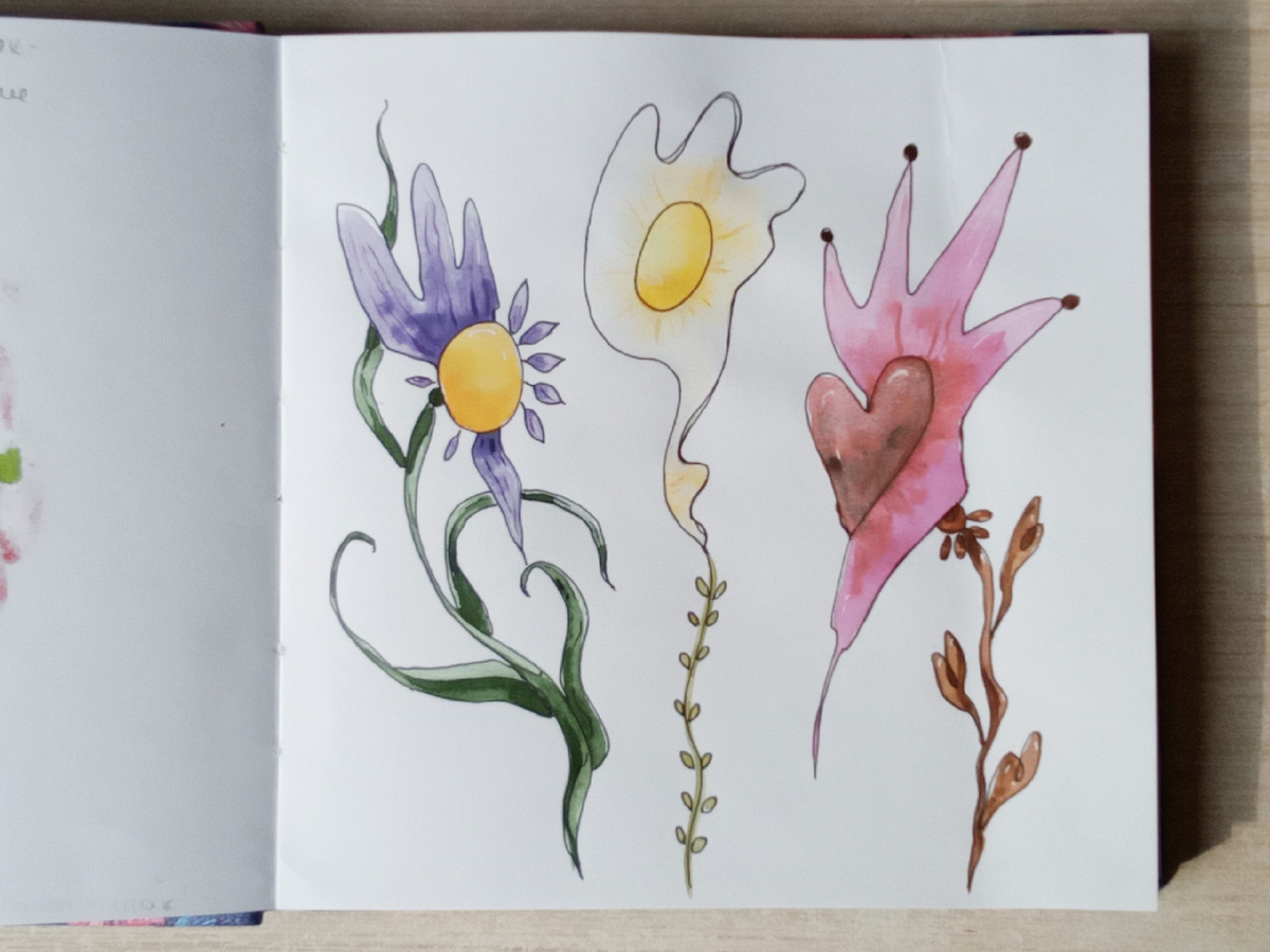 Всем чернично-космический привет! Сегодня поделюсь с вами иллюстрациями, нарисованными в рамках разных марафонов. С конца февраля и в течение марта я приняла участие в шести различных арт-челленджах, включая свой годовой. Все марафоны проходили в Вконтакте. Первым арт-марафоном, привлекшим моё внимание, стал #цветочная_фантазия_весна. Нужно было изобразить несуществующие цветы. Задание как раз для меня. Я с радостью уселась на скетчбук. Не смогла выбрать, какой же из своих цветов зарисовать, и сделала три. В этом марафоне покрасовались яичницообразные ромашки, треугольнообразный фиолетовый цветок и цветок-сердечко. Буквально сразу после этого я увидела афишу #PantoneDTIYS. Нужно было перерисовать предложенную иллюстрацию в своём стиле. Однажды я делала уточку в своём стиле, сидящую в корзинке с ромашками. Захотелось и сейчас испытать себя. Предложенный портрет был в не самых моих любимых коричневых оттенках, но я с удовольствием порисовала. Правда, мне кажется, можно было застилизо