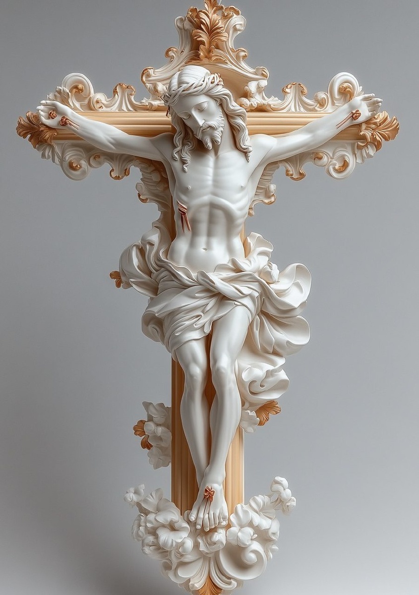 Создано на основе запроса: baroque crucifix, beautiful, detailed, photorealistic image, prduct photography, studio shots, completely white