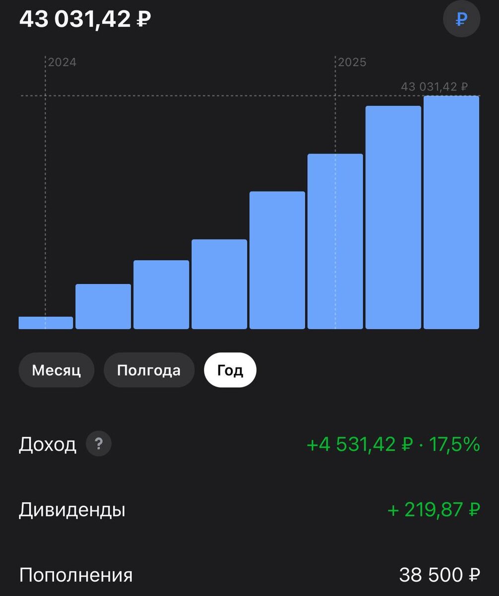 Всем привет! Началась непростая торговая неделя, за выходные прилично пролили хедлайнеров индекса МосБиржи #IMOEX продолжим усиливать позицию по РуссНефти, идея попрежнему актуальна. Доходность нашего #челенджсколлегами не смотря на снижение рынка, попрежнему на уровне 17.5% Покупка на сегодня #154 с учетом оставшихся денег с прошлых сделок Статистика портфеля на стороннем сервисе, можно посмотреть по "ссылке" Напомню это челендж с коллегами, каждый рабочий день пополняем брокерский счет на 250 рублей и инвестируем. Если возникли вопросы или есть не понимание, что делать. Задавайте «тут» Покупка #154 🟢 "РуссНефть" 146.7 RUB #RNFT 1 лот #каждыйсможет #челенджсколлегами ✈️ Стас Мироненко 📹Youtube | 📹Rutube