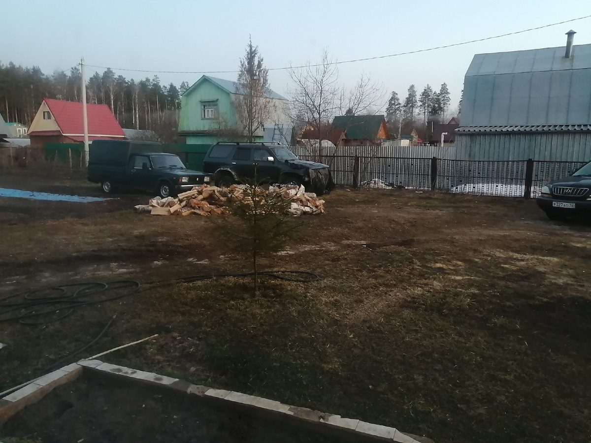 Приветствую, друзья! Это фото уже снимаю почти в семь часов вечера. Вечереет и плоховато видно. Но все равно видно, как Игорь прибрался во дворе. Муж сегодня занимался тем, что перевозил дрова в дровник. Эта часть, что осталась на участке, не влезла в сарай. Вот оно, что было до обеда. Везде щепки от дров и следы от грузовика, что завозил дрова. Заполнил весь сарай дровами. И принялся собирать мусор во дворе, а потом и выметать все. Нагреб семь полных мешков мусора, завтра надо будет вывезти. Сегодня приехали прямо все, все соседи, что в непосредственной близости от нас. Приехали и те, у которых намесили грязи у ворот. Это было что то. Они были в таком ступоре, что минут пять просто не могли выйти из машины. Потом Ольга сдала назад, что бы муж хоть на сухое вышел. Безобразие конечно. Думаю, что хозяин коттеджа, где ведётся стройка, должен был как то решить вопрос с дорогой. Пусть бы привёз машину строительного мусора, а рабочие уложили бы этот мусор. Ведь непосредственно он