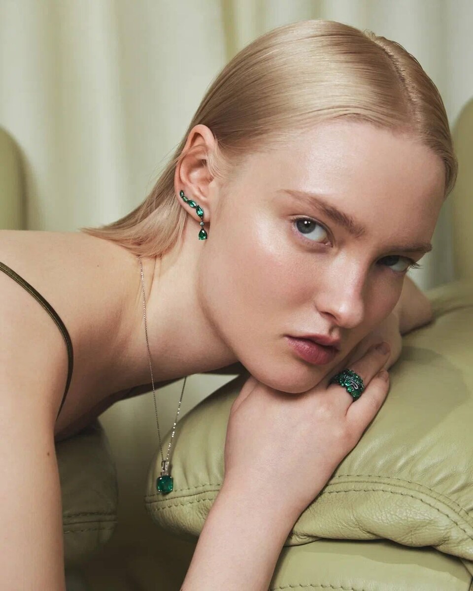 Серьги с маркизами — модель-бестселлер Liza Borzaya, сверкающая изумрудами, танзанитами и, конечно, бриллиантами. Украшения с насыщенными зелеными изумрудами и пронзительными сиренево-синими танзанитами понравятся тем, кто любит ставить цветовые акценты, подбирая образ перед выходом из дома. Не так давно мы любовались серьгами с изумрудами в паре с черным приталенным брючным костюмом — их выбрала журналист Анастасия Полетаева для записи своего шоу БЕЗФИЛЬТРОВ А серьги с кокетливо переливающимися бриллиантами могут стать не только вечерней базой ювелирной коллекции. Просто представим, как круто они выглядят в комплекте с белой рубашкой. любимыми голубыми джинсами и удобными черными лоферами. Совет: присмотритесь к рисунку серег перед тем, как надеть их. Камни огранки маркиз должны подчеркивать форму уха и будто стекать по коже, спадая с ее поверхности драгоценностями грушевидной огранки.