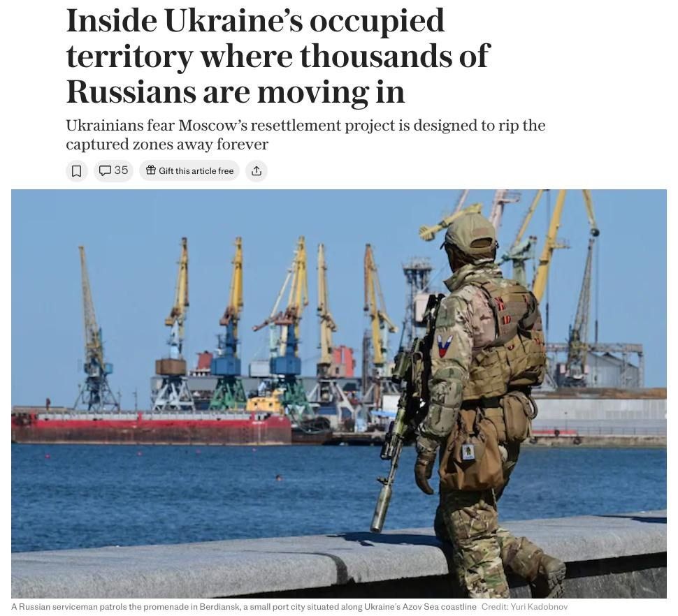 За 37 месяцев войны рф захватила 70 000 кв. км территории Украины, что примерно равно площади Бельгии и Нидерландов вместе взятых, жалуется - The Telegraph "Чтобы восполнить нехватку рабочей силы и ещё больше усилить контроль над захваченными регионами, Mосква переселила на эти территории сотни тысяч россиян", - пишет издание. Как по мне - ход конём 🇷🇺 Куда заехали русские, там уже ничего кроме русских не будет. В Латвии 🇱🇻 это подтвердят, ведь именно они жалуются, что при 1 русском ребенке в классе, все остальные дети начинают говорить по русски. 😂 💎 https://dzen.ru/id/6443d28ec299e0617e95cbad