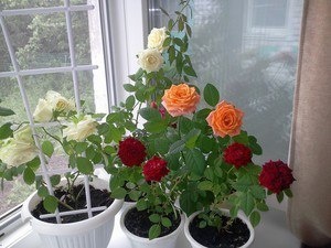 Домашние комнатные розы отличаются разнообразной окраской. Миниатюрные сорта обычно имеют очень стройные кустики, в точности повторяя красивейшие чайные и чайно-гибридные виды.