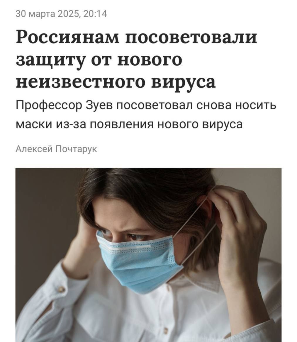 🤩Россиян призвали вновь носить маски из-за вспышек микоплазменной пневмонии — неизвестного вируса, от которого люди кашляют кровью.