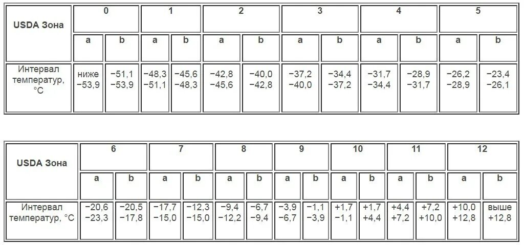 Зоны морозостойкости — это система, использующая климатические данные для определения того, какие растения могут расти в определенных географических областях. Эти зоны разделяются по температурным граничным значениям (указаны усредненные значения):