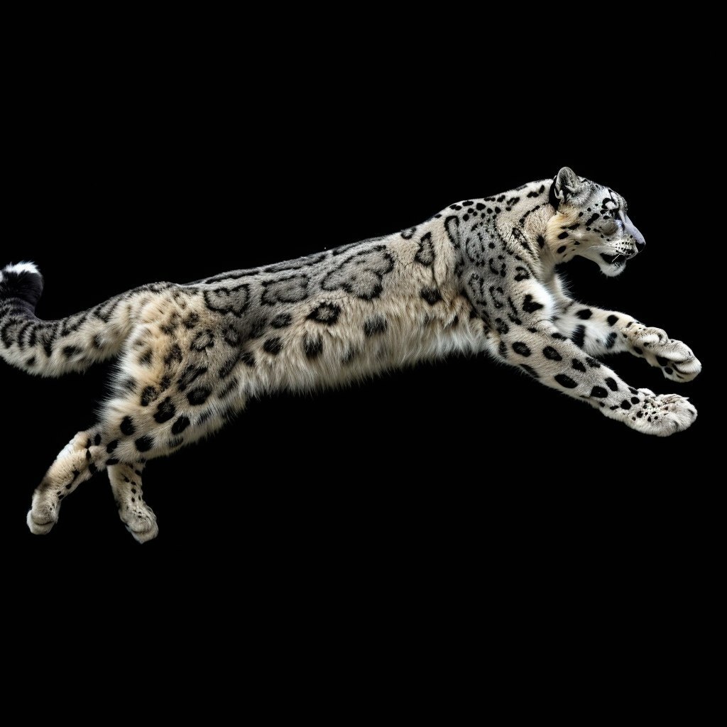 Создано на основе запроса: Side profile of a jumping snow leopard