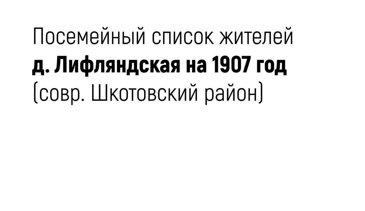 Ниже привожу посемейный список жителей деревни Лифляндская не ранее 1907 года (современный Шкотовский район) с указанием ФИО главы семьи и его возраста.