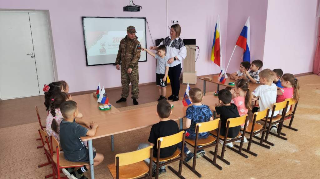 На днях к дошколятам в семикаракорский детсад «Светлячок» пришел в гости участник специальной военной операции наш земляк и папа воспитанников Кирилла и Ромы — Виктор Владимирович Шаповалов. Малыши пообщались с настоящим военным, который защищает нашу Родину.