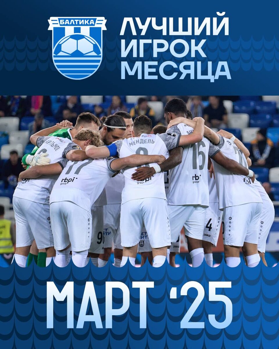 ЛУЧШИЙ БАЛТИЕЦ МЕСЯЦА 🦬 👏 Март подходит к своему завершению, значит пришло время определить лучшего игрока нашей команды в этом месяце. Напомним о традиционной схеме опроса: 👉 1️⃣ этап - предварительный (начинаем прямо сейчас, итоги будут подведены во вторник вечером): в комментариях мы предлагаем каждому болельщику написать имя лучшего футболиста 👉 2️⃣ этап - основной (начинается 2 апреля и завершится 4 апреля): на основании ваших комментариев будут отобраны 3️⃣ кандидата на звание лучшего игрока месяца и затем мы проведем голосование в нашем телеграм канале 👇 Залетаем в комментарии и вперед!