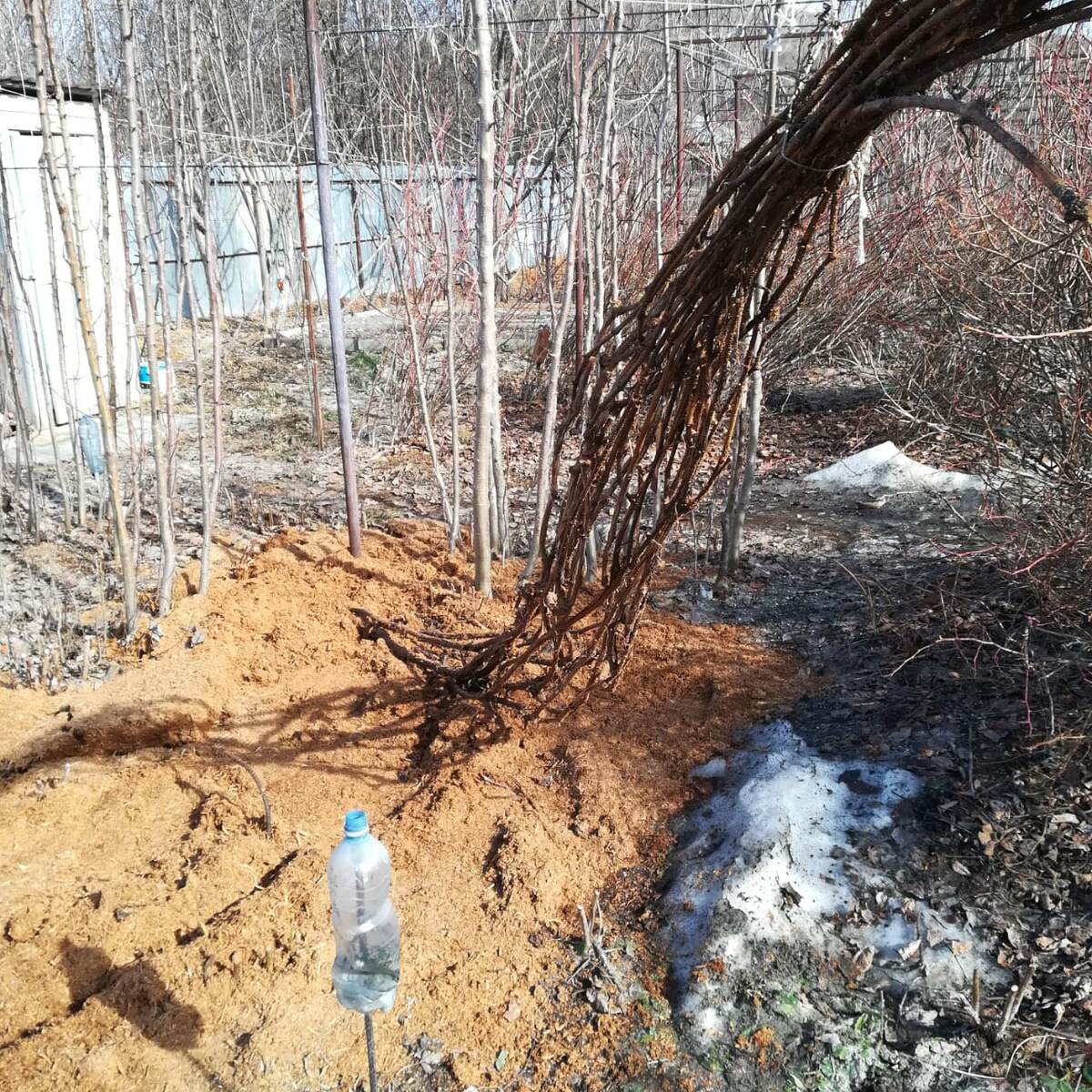 Я использую опилочное укрытие на зиму. Об этом вот здесь. Вначале обрезаю лозу, увязываю в пучки, пришпиливаю к почве. И засыпаю опилками, естественной влажности. И в моих условиях Предгорья Алтая, при такой системе укрытия на зиму, кусты винограда прекрасно зимуют. Обычно, раскрываю чуть позже. Но, в этом сезоне, вот 31 марта, а опилочное укрытие уже местами оттаяло полностью. И некоторые кусты удалось сразу поднять. А у остальных кустов только разгреб верхнюю часть оттаявших опилок укрытия. Через день-два и их можно будет освободить от укрытия, и поднять на просушку. Использую такой способ укрытия уже 30 лет. Результаты зимовки меня вполне устраивают. Все просто, быстро и удобно выполнимо. При том, такое укрытие, типа "два в одном". Использую опилки в качестве мульчи по всему саду. И, получается, что часть опилок уже на месте. Осталось разгрести их в проходы, и мульча уже готова. На этом садовом участке свежих опилок пока не завезли. Поэтому, листовой опад осенний, ещё не прикрыт оп