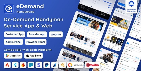 eDemand-Multi Vendor Удобные услуги по запросу, Разнорабочий с приложением Flutter | Админ-панель | Веб-версия