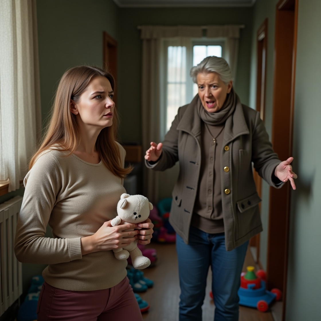 — Твои дети не мои внуки! – крикнула свекровь, хлопнув дверью так, что стекло в прихожей задрожало. Её голос эхом отлетел от стен, а я осталась стоять посреди комнаты с игрушкой в руках – пластиковым грузовичком, который Мишка только что бросил на пол.
