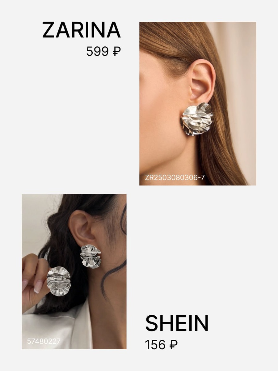 Я провела небольшое исследование и нашла полные аналоги украшений из LIME, ZARINA, LOVE REPUBLIC на SHEIN. А где-то даже удалось найти очень похожие модели. И самое интересное — я нашла аналог даже недоступной ZARA!
