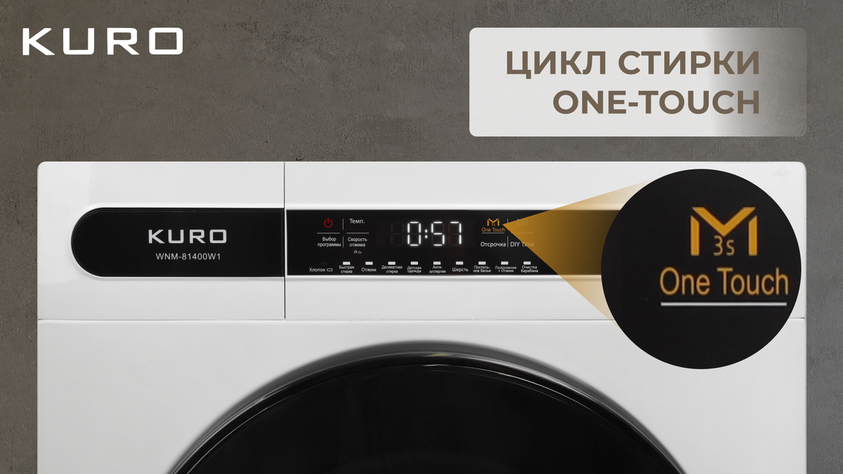 С помощью этой технологии стиральная машина автоматически определяет тип ткани, уровень загрязнения и выбирает оптимальные параметры стирки. Вам больше не нужно вручную настраивать программу — достаточно загрузить белье, выбрать функцию ONE TOUCH и нажать кнопку старта. ⚫ Преимущества автопрограммы ONE TOUCH 1 Не нужно разбираться в множестве программ и настроек. Всегда можно довериться машине, которая сделает все за вас. 2. Машина сама определяет, сколько воды и моющего средства нужно, а также выбирает подходящую температуру и время стирки, что обеспечивает бережное отношение к вашим вещам. 3. Благодаря автоматизации процесса вы экономите время на настройку программы и можете заниматься другими делами. 4. Автопрограмма ONE TOUCH помогает снизить потребление воды и электроэнергии, так как машина сама подбирает оптимальные параметры для каждой загрузки. 5. Благодаря интеллектуальному подходу к стирке ваши вещи будут чистыми и свежими, а ткани сохранят свою структуру и цвет. ⚫ Как испол