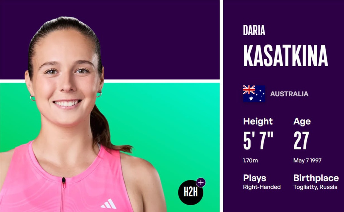 На сайте WTA в профиле теннисистки Дарьи Касаткиной появился флаг Австралии.