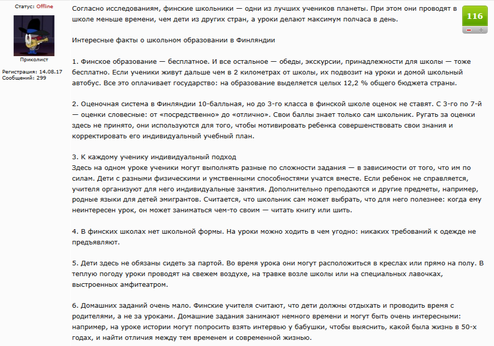 Наткнулся на очередной панегирик финской системе образования и поразился, что люди могут восхвалять такое. Как по мне - это надо не хвалить, а ругать, и уж точно не стремиться сделать что-то подобное.