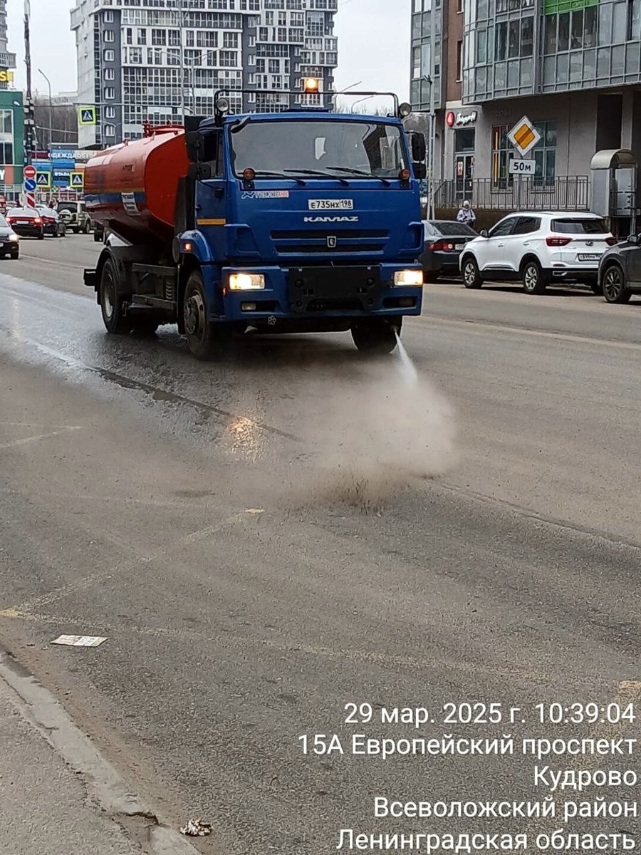 Поливомоечная техника вышла на улицы: комплексную уборку муниципальных территорий провели в Заневском городском поселении.
